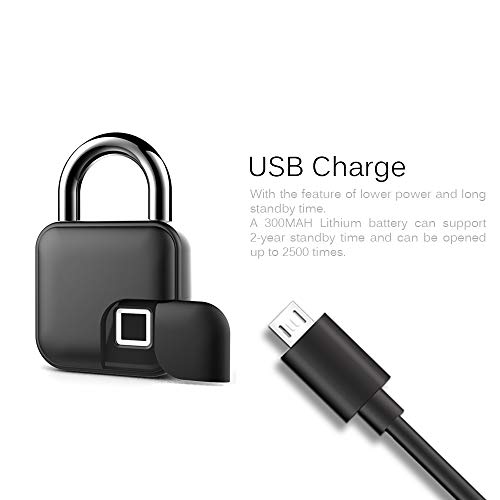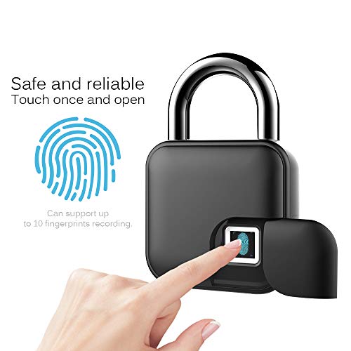 ALLOMN Lucchetto a Impronta Digitale, Lucchetto Elettronico di Sicurezza Smart keyless Toccare 1 Secondo Sblocco Rapido Ricarica USB IP65 Supporto Impermeabile 10 Impronte Digitali con Parapolvere
