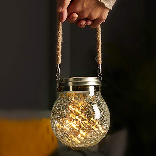 ALLOMN Luci Solari per Barattoli di Muratore, 2 Pezzi Luce Solare Giardino IP67 Lampada Giardino Impermeabile a Sospensione Luce Fata Cortile, con Corda per Appendere Bottiglia di Vetro (Bianco Caldo)