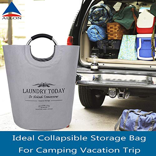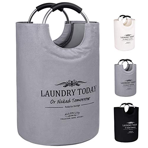 Allon, cesto della biancheria pieghevole con manici, in 100% tela di cotone, grande e resistente Grey