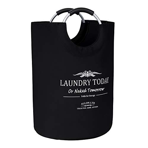 ALLON, Cesto portabiancheria Pieghevole, 100% Tela di Cotone, Grande Cesto portabiancheria Resistente, con Comodi Manici, Tessuto, Nero, Large