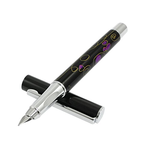 Alloy Shell nero 0.6 mm Con Cappuccio piuma fiore stampato Writing Fountain Pen 5 lungo