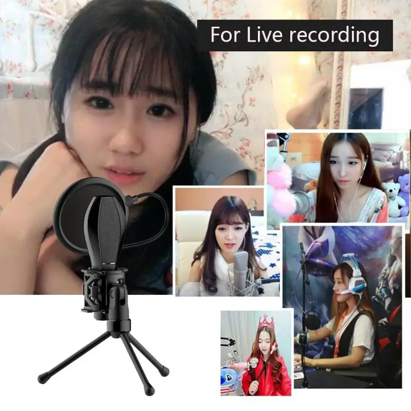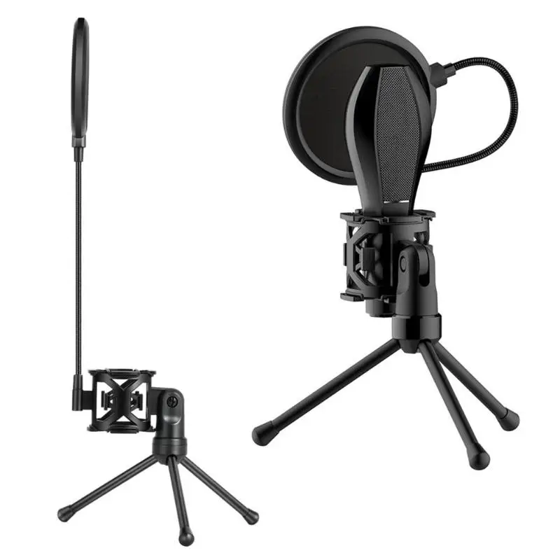 ALLOYSEED Foldable Microphone Shockproof Shock Mount Filter Bracket Stand Mic Tripod Holder Support for Studio Desktop