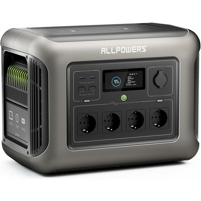 Allpowers - R1500 Tragbare Powerstation, 1152Wh LiFePO4 Batterie mit 1800W (3000W Spitze) ac Ausgang Solargenerator, 43dB Leise Betrieb Mobile Notstromversorgung für Garten Party Reise Camping Wohnmobil