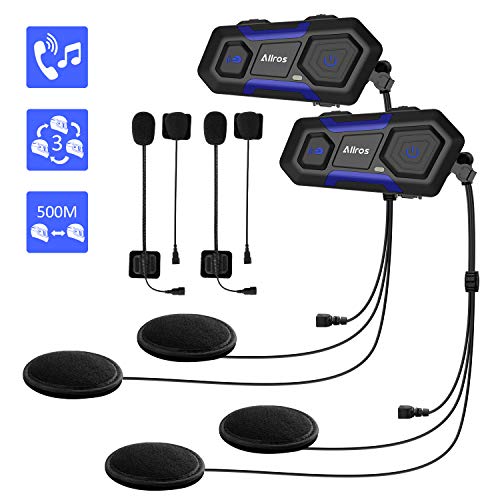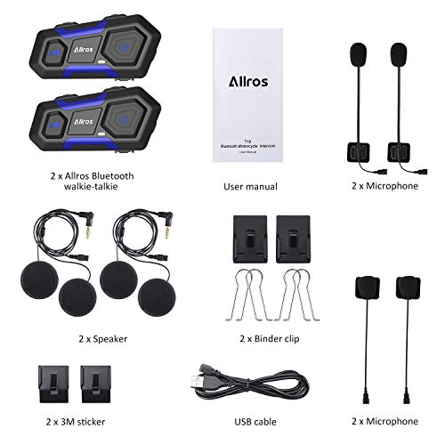ALLROS Interfono Moto Bluetooth, Interfono Impermeabile per Casco, Comunicazione da 1200m fino a 3 Riders, Moto Auricolare Bluetooth con Cancellazione del Rumore per Casco Moto