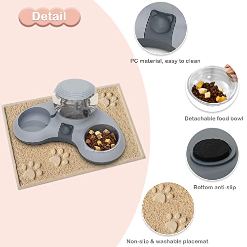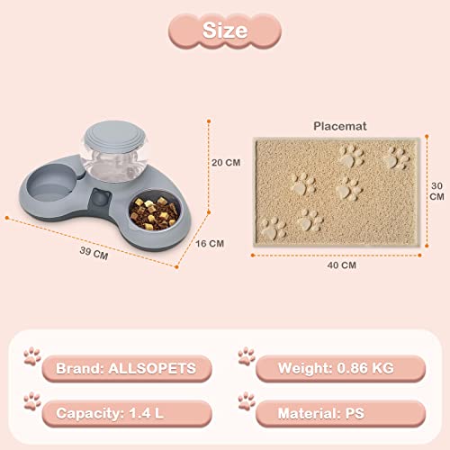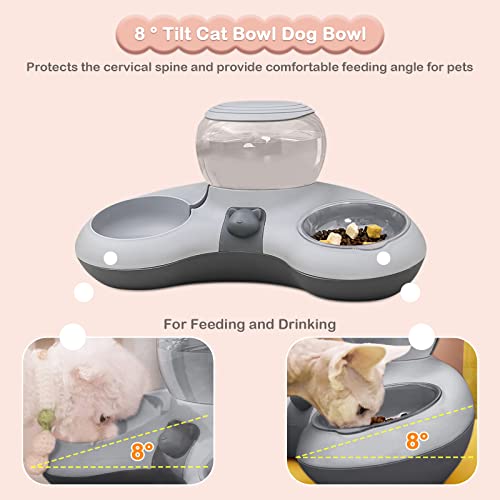 ALLSOPETS Ciotola per Gatti Doppio Ciotola Gatto con Distributore Automatico d'acqua 2 in 1 Inclinazione 8° Proteggere Gattino Rachide Cervicale Adatto per Gatti e Cani di Piccola Taglia Grigio B