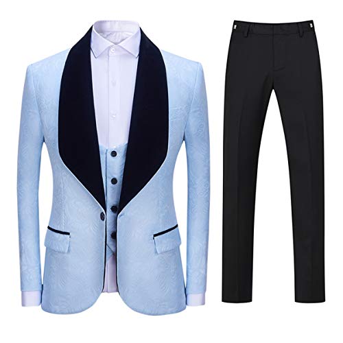 Allthemen Abiti da Uomo 3 Pezzi Prom Wedding Tuxedo Suit per Uomo Scialle con Bavero One Button Blazer Gilet Pantaloni Blu chairo XL
