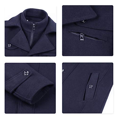 Allthemen Cappotto da Uomo in Lana Giacca Slim Fit da Lavoro Corto Business Trench Coat Soft Touch Calda Invernale Blu Scuro 3XL