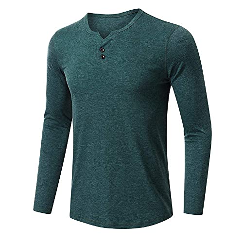 Allthemen T-Shirt da Uomo in Cotone a Maniche Lunghe con Colletto Tunisino Camicia Casual Abbottonata per Primavera Autunno Blu M Verde M