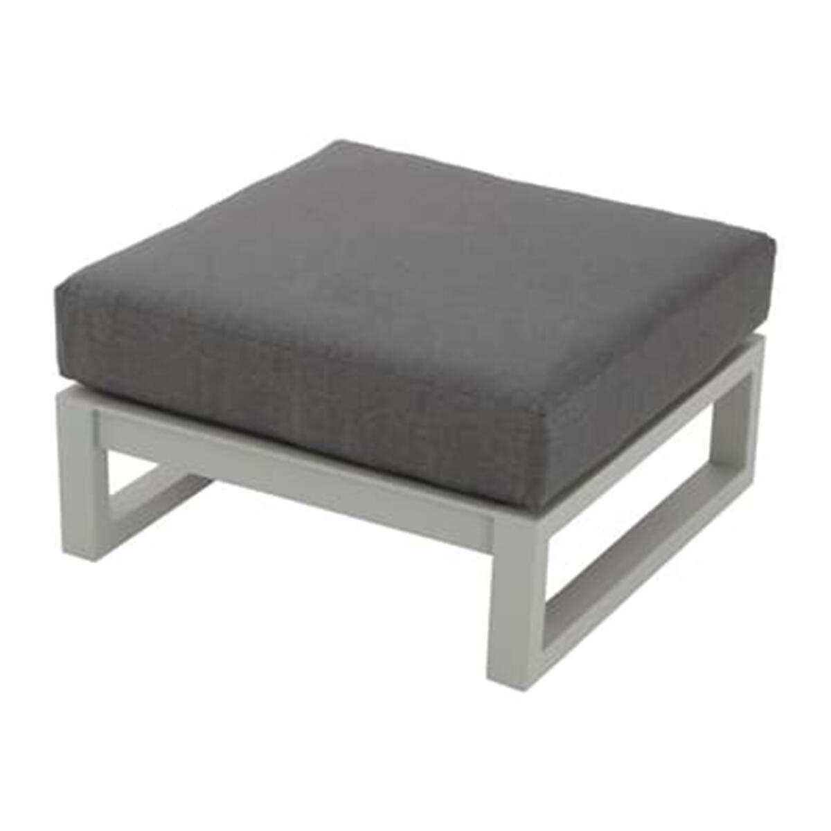 Struttura in alluminio, cuscini in poliestere color grigio. Dim. L 74 x P 74 x H 25 cm
