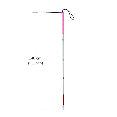 Alluminio Bastone Bianco Pieghevole Per Non Vedenti 5 Sezioni Con 2 Punta Plastica (140 cm, Rosa Impugnatura)