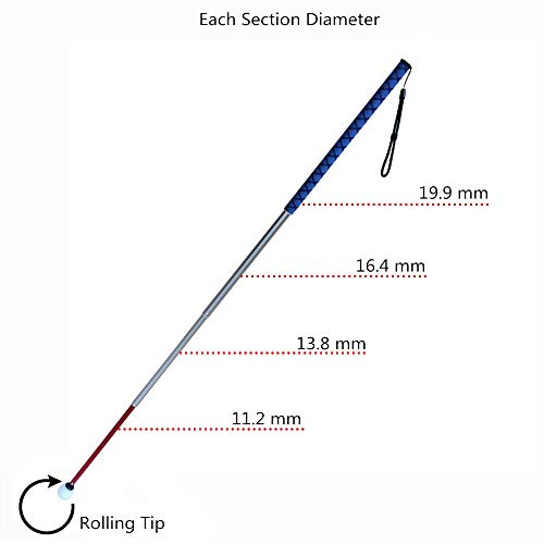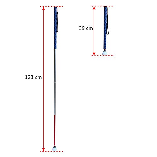 Alluminio Bastone Bianco telescopico da 39cm-123cm,4 Sezioni, Con 2 Punta Roller,Per Non Vedenti (Blu Impugnatura)