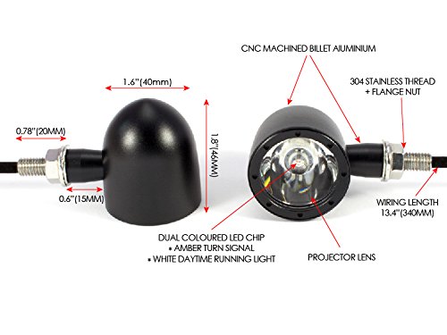 Sono un set di indicatori integrati di alta qualità e solido: funzione 1: indicatore / funzione 2: luce di guida DRL. L'obiettivo è proiettore ed è rifinito in un alloggiamento in alluminio billet lavorato 6061