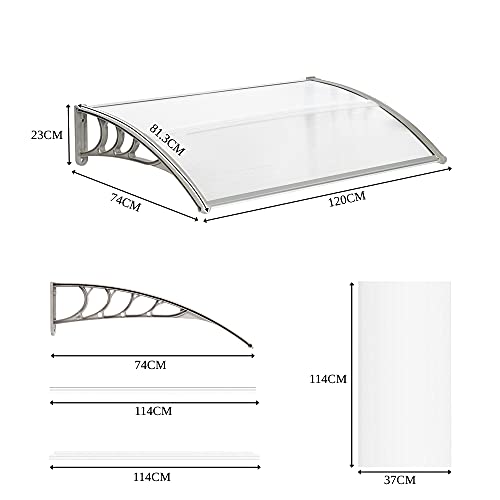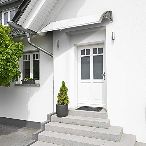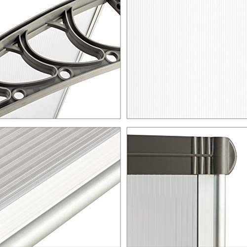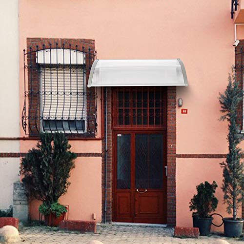 DUREVOLE E VERSATILE: composta da un pannello in policarbonato cavo trasparente da 5 mm, un solido supporto in ABS e una barra in alluminio, questa tenda da sole per porta resiste alla ruggine e alla corrosione degli elementi. Lo stile moderno ed elegante della nostra tenda da sole a baldacchino può essere utilizzato per applicazioni residenziali o commerciali, ad esempio case e uffici con altezza libera ridotta