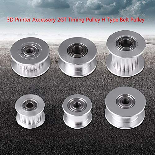 5Pz 2GT Alluminio Timer Puleggia 3D Stampante Accessori, 3mm / 5mm Foro Ruota 16/20 Denti o Senza Denti per Cinghia Larghezza 6mm / 10mm(W6mm, 20T, foro 5, senza denti)