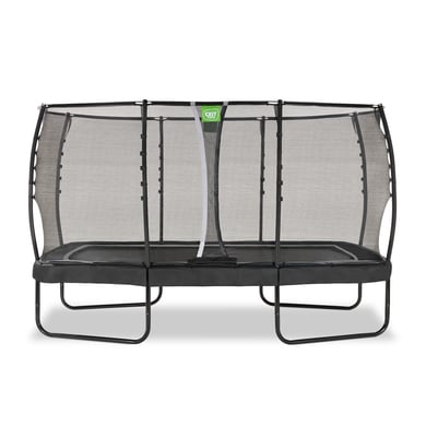 Il trampolino EXIT Allure Premium è un trampolino con un bordo protettivo e una rete di sicurezza premium. Grazie al sistema EXIT Foot Protection System (FPS), una rete posta tra il tappeto da salto e il bordo protettivo del trampolino, i trampolinisti non rimangono mai impigliati con i piedi tra le molle. La rete di sicurezza Premium in dotazione ha un'entrata sovrapposta che si chiude automaticamente. Anche i tubi della rete di sicurezza Premium sono rivestiti in schiuma XPE di alta qualità. Le molle extra-lunghe a doppio cono di ben 21,6 cm garantiscono un salto perfetto e un atterraggio morbido. Il telaio zincato e verniciato a polvere garantisce una lunga durata del trampolino. Gli anelli in fibra di vetro e i tubi piegati mantengono la rete di sicurezza ben salda e il bordo protettivo extra spesso con uno strato di Pvc idrorepellente protegge in modo ottimale sia voi che il trampolino. Dettagli: Modello: Trampolino su piedi Con sistema di protezione del piede Materiale: PP (polipropilene) Dimensioni (lunghezza x larghezza x altezza): 244 x 427 x 274 cm Peso: 142 kg Età: da 3 anni