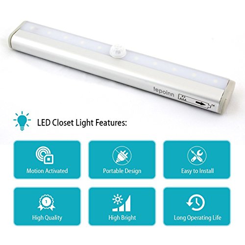 Almatess Luce Wireless a 10 LED Portatile da Attaccare Ovunque con Sensore di Movimento da Usare come Luce per Armadio, per la Notte, per le Scale e per i Gradini con Striscia Magnetica (3)