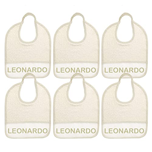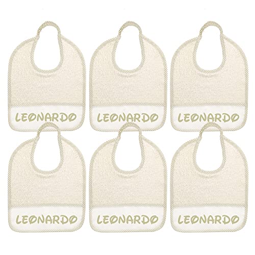 ALMATEX SRL 6 bavaglini personalizzati con nome misura cm.24x27 in spugna con elastico e tasca raccogli briciole personalizzata con nome - 100% cotone - made in italy (PANNA)