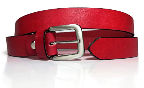 Almela Cintura per Bambini e Bambine - Pelle Bovina - 2,5 cm di larghezza - Cuoio - Cinghie per Ragazzi e Ragazzie - 25 mm (Rosso, 75)