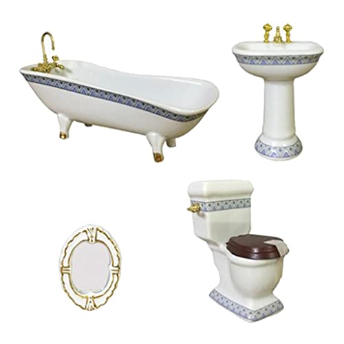 Almencla Set da Bagno per Casa delle Bambole in Miniatura, 4 Pezzi 1:12 - Specchio per Lavandino del Bagno con Vasca