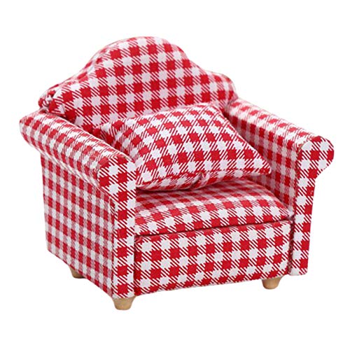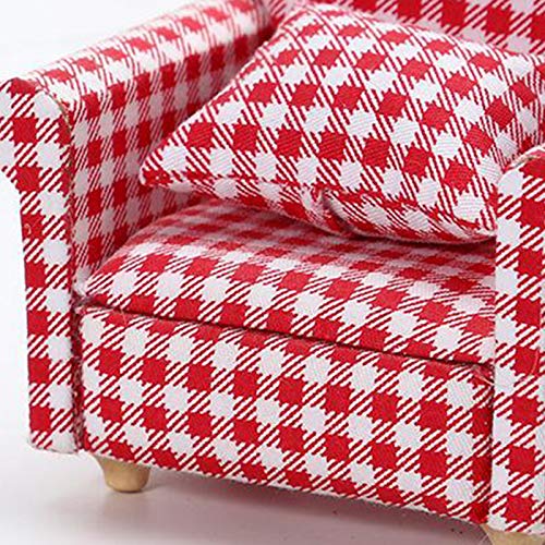 Almencla 1/12 Dolls House Miniatura Moderna Poltrona Divano Divano con Strisce Bianche Rosse