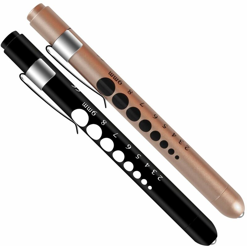 Specifiche: Materiale: lega di alluminio + lampadine a LED. Colore LED: bianco brillante. Dimensioni: 1,25 cm di diametro x 13,5 cm di lunghezza. Caratteristiche: Clip carina e design leggero sono convenientg per il trasporto. Lega di alluminio graduata medica per controlli infermieristici più sicuri e sani. Interruttore on/off a pulsante, facile da controllare. Potrebbe essere un elemento essenziale perfetto per l'uso in famiglia. La confezione include: 2 x LED penna luce (nero e oro) 2 batterie AAA, non incluse.