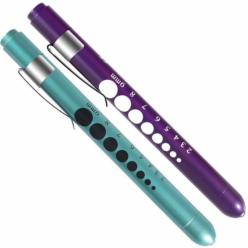 Specifiche: Materiale: lega di alluminio + lampadine a LED. Colore LED: bianco brillante. Dimensioni: 1,25 cm di diametro x 13,5 cm di lunghezza. Caratteristiche: Clip carina e design leggero sono convenientg per il trasporto. Lega di alluminio graduata medica per controlli infermieristici più sicuri e sani. Interruttore on/off a pulsante, facile da controllare. Potrebbe essere un elemento essenziale perfetto per l'uso in famiglia. La confezione include: 2 x LED penna luce (verde acqua e viola) 2 batterie AAA, non incluse.