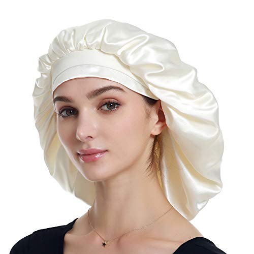 Alnorm Cuffia da sonno in raso, extra grande, doppio strato, bianco, Taglia unica