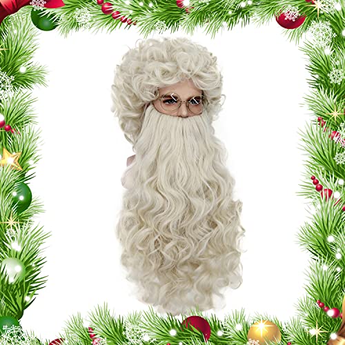 Alobsily Parrucca di Babbo Natale e parrucca di lusso, set di Babbo Natale Babbo Natale, parrucca biondo chiaro + barba + berretto da Babbo Natale Wig AB014