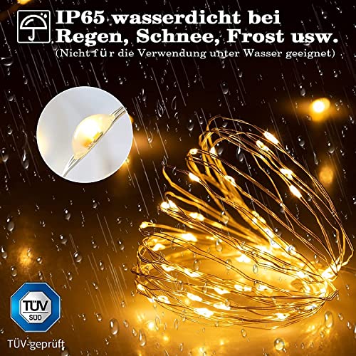 ALOICI 2 catene luminose da 50 LED con timer, funzionamento a batteria, 5 m di filo d'argento + cavo da 1 m, bianco caldo (IP65 impermeabile per esterni, 8 modalità)