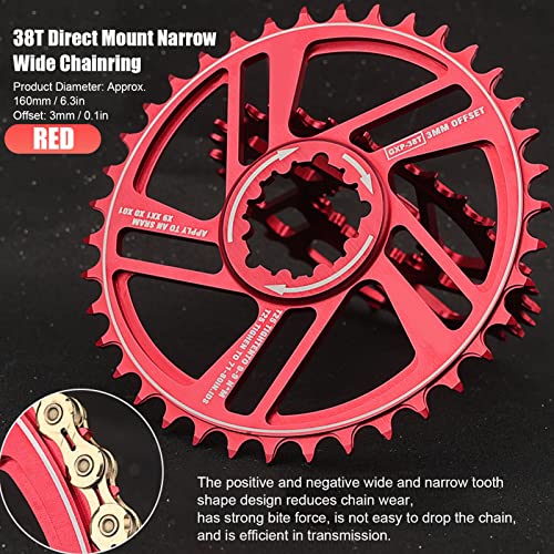 Alomejor Corona per Bicicletta 38T Anello per Catena Singola Ruota Dentata Offset di 3 Mm Montaggio Diretto Corona Larga Stretta per Pedivella SRAM GXP(Rosso)
