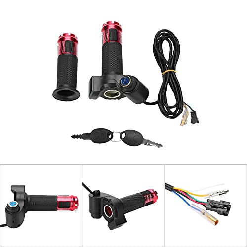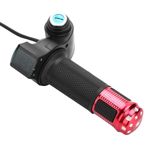 Alomejor Impugnatura Acceleratore Bici Acceleratore Elettrico Twist Bike con Display a LED e Key Knock per Bicicletta Elettrica(Rosso)