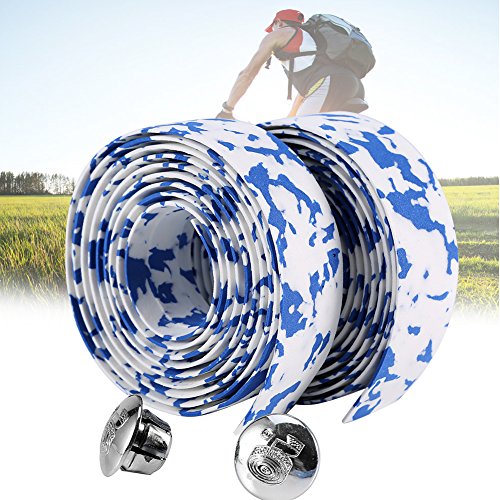 Alomejor 2 pezzi Nastro per Manubrio per Bici da Strada Nastri Barra per Ciclismo Bici da Corsa Traspirante Antiscivolo con Tappi Terminale (blu e bianco)