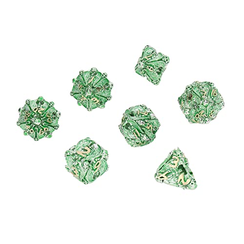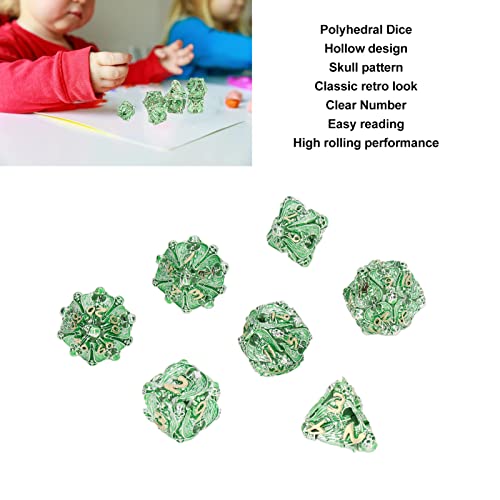 Alomejor Set di Dadi Poliedrici, 7 Dadi in Metallo con Motivo Teschio per Oggetti di Scena Giochi di Carte da Tavolo (Verde Argento)