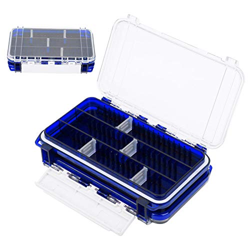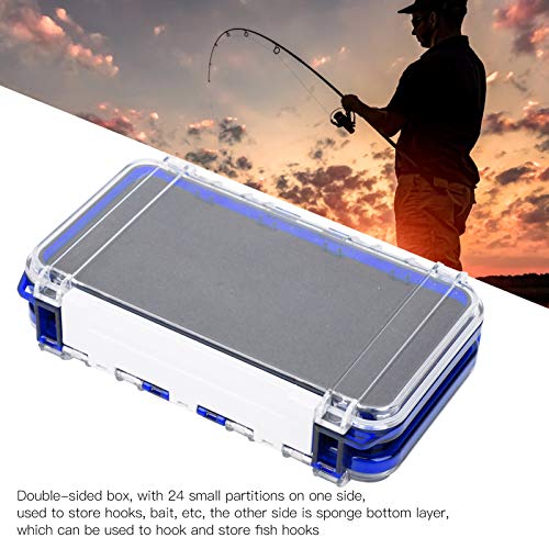 ABBASTANZA SPAZIO DI STOCCAGGIO: Scatola bifacciale, con 24 piccole partizioni su un lato, utilizzate per riporre ami, esche, ecc., L'altro lato lo strato inferiore di spugna, che può essere utilizzato per agganciare e riporre ami da pesca.
