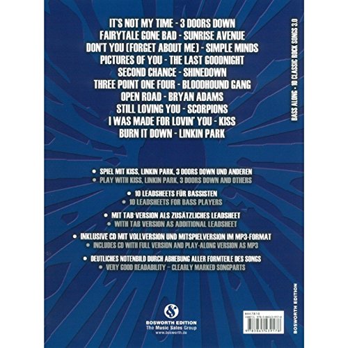 Bass Along - 10 Classic Rock Songs 3.0 (Book & CD): Songbook für Bass-Gitarre