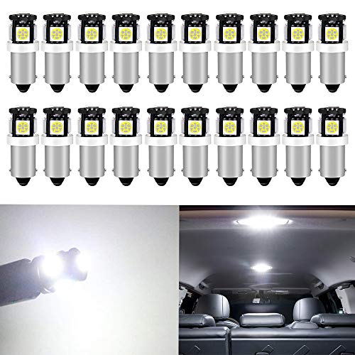 ALOPEE- 20-Pack BA9S BA9 12146 1445 1705 Bianco LED Light 12V, 5 SMD 5050 Chipset Car Interior Replacement 6253 64111 Lampadina per Map Dome Cortile di Cortesia Targa Glove Box Side Marker Light