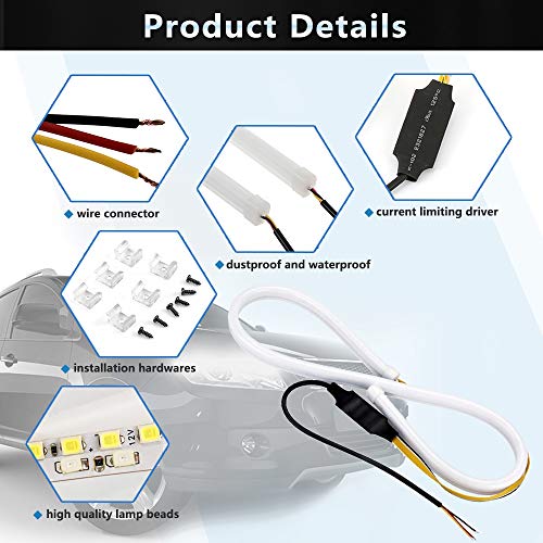 ALOPEE (1 Set) 45CM 17.7"Tubo LED Bianco/Ambra Flessibile Stile Striscia LED Barra Scorrevole LED DRL Luci di Marcia Diurna Tear Strip Faro Auto Indicatore di Direzione Lampada di Parcheggio