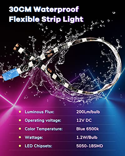 ALOPEE - Confezione da 6 Pezzi 30CM 11,8 "blu 5050 18SMD LED DC 12V Striscia Impermeabile Luce Sottoscocca per Motociclette Luce Decorativa per Barche Striscia Flessibile Collegabile