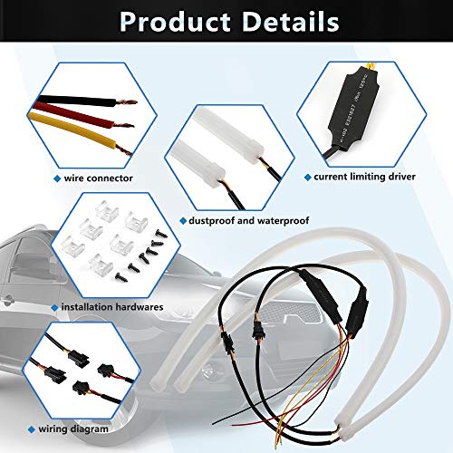 Alopee Ultra-Luminoso 60CM Bianco/Ambra Switchback DRL Flessibile LED Tubo Strip Style Giorno di svolgimento Luci Strofinamento Strip Luce Auto Luce di Segnalazione Luce di parcheggio Luce (1 Set)