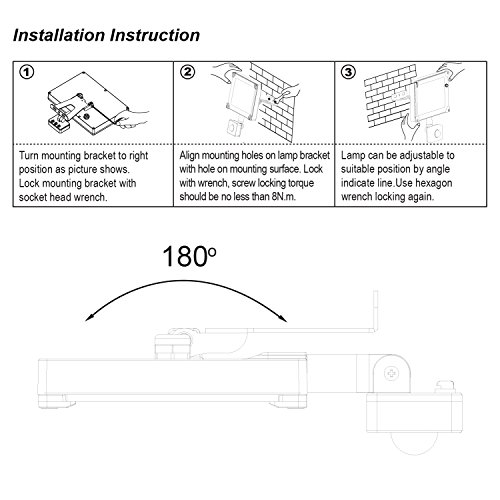 Sensore intelligente PIR: Il nostro proiettore auto on / off sensore di movimento regolabile da distanza 2-10meter, luce ambiente regolabile 10-2000Lux, tempo regolabile 10-300s. Ruotare gli indicatori sul retro del sensore per regolare la sintonia desiderata.