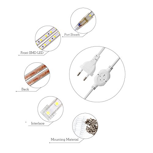 ALOTOA Striscia LED, 2M 60LEDs/M SMD 5050 bianco freddo 6000K, 230V IP68 strisce di LED per la casa, decorazione del giardino di illuminazione striscia luminosa