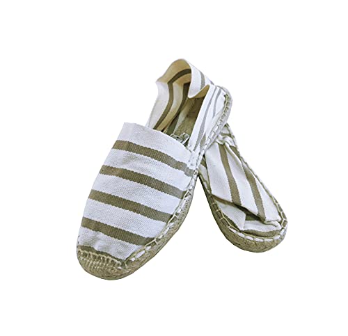 Alpargatas classiche da sparto, Piane a righe realizzate a mano in Spagna di Manera Completamente Artigianale - Scarpe comode e fresche per tutto l'anno, Righe beige, 41/47 EU
