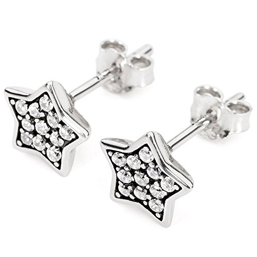 Alpensilver Orecchini al Lobo a Forma di Stella - in Argento Sterling 925 con Zirconi - Stile Antico - Gioiello Chic - Privo di Rischi - Grande Idea Regalo