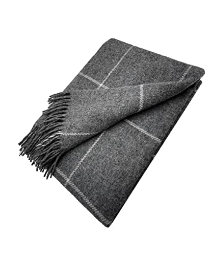 Alpenwolle Coperta di lana, 140 x 200 cm, Nuova Zelanda, 100% lana dalla Nuova Zelanda, plaid con frange (grigio scuro)