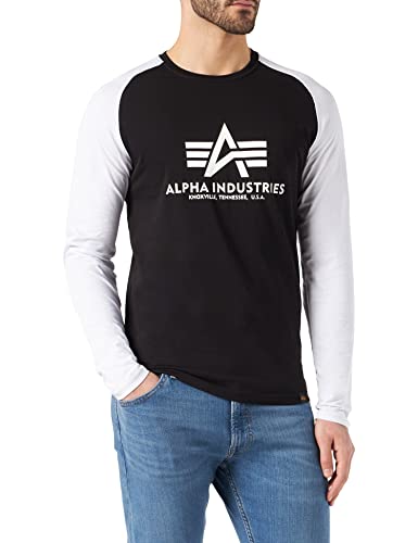 ALPHA INDUSTRIES Basic LS T-Shirt, Black/White, L Uomo