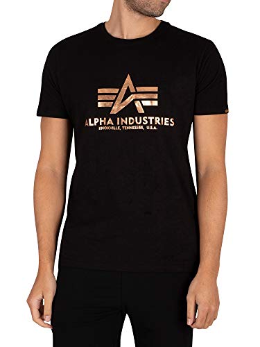 ALPHA INDUSTRIES Basic T-Shirt, Nero/Oro, XXL Uomo