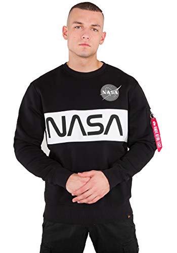 ALPHA INDUSTRIES NASA Inlay Sweater Felpa, Black, XXL Uomo
