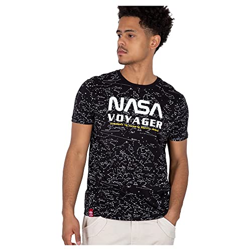 ALPHA INDUSTRIES NASA Voyager AOP T-Shirt, Nero, XXL Uomo