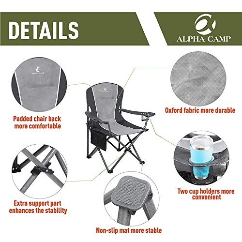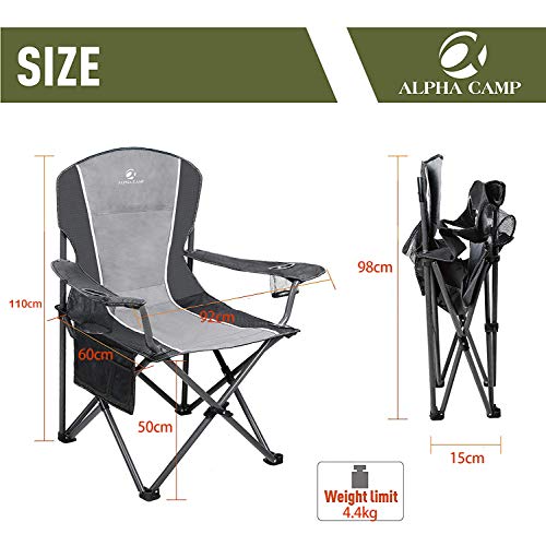 ALPHA CAMP Sedia da campeggio pieghevole imbottita con portabicchieri e braccioli, portata fino a 160 kg