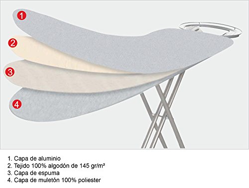 Lo spesso mollettone multistrato e l'imbottitura in spugna garantiscono il massimo comfort di stiratura